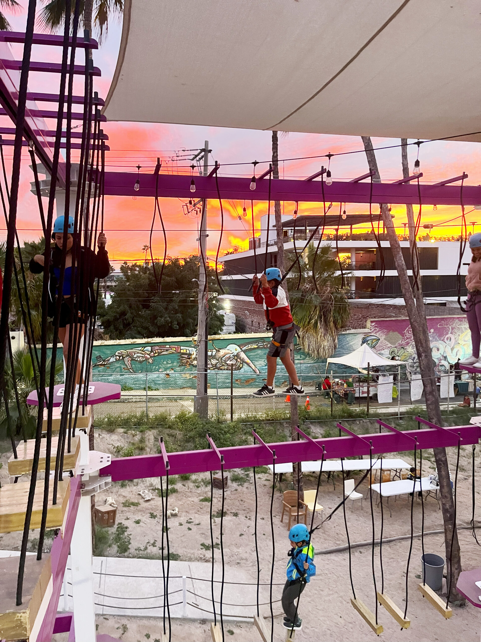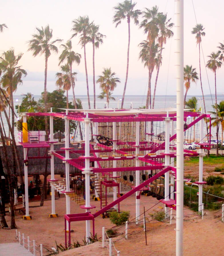 Frente al Malecón en La Paz BCS: encuentra Muros de escalada, circuitos aéreos, tirolesa y saltos extremos para todas las edades.